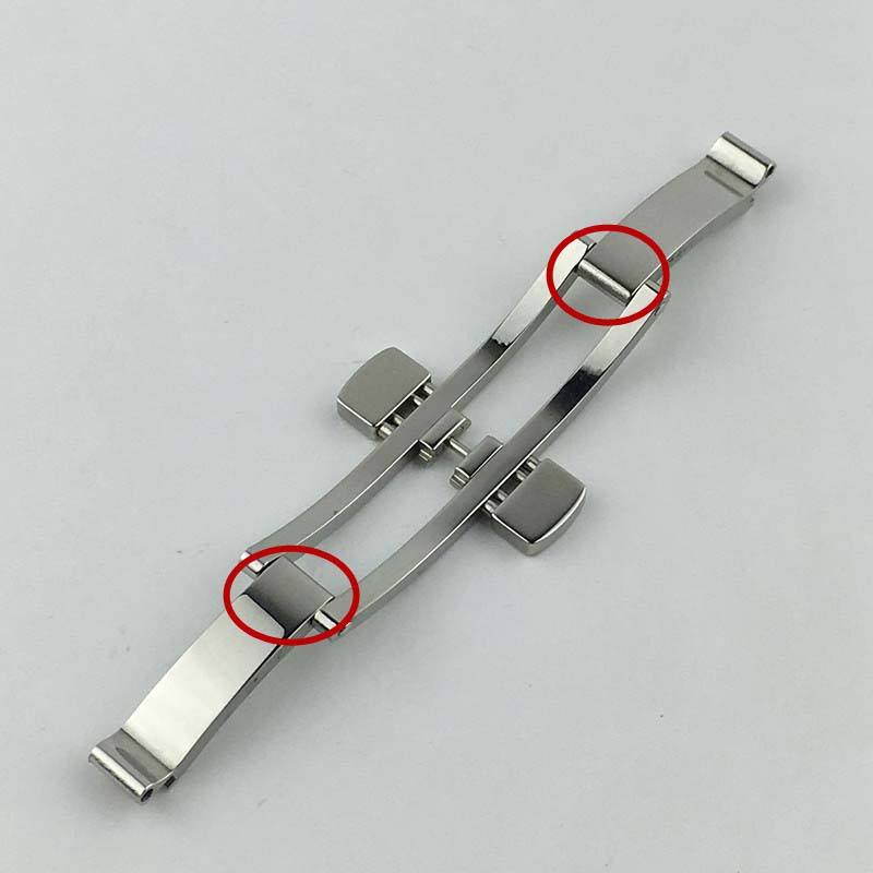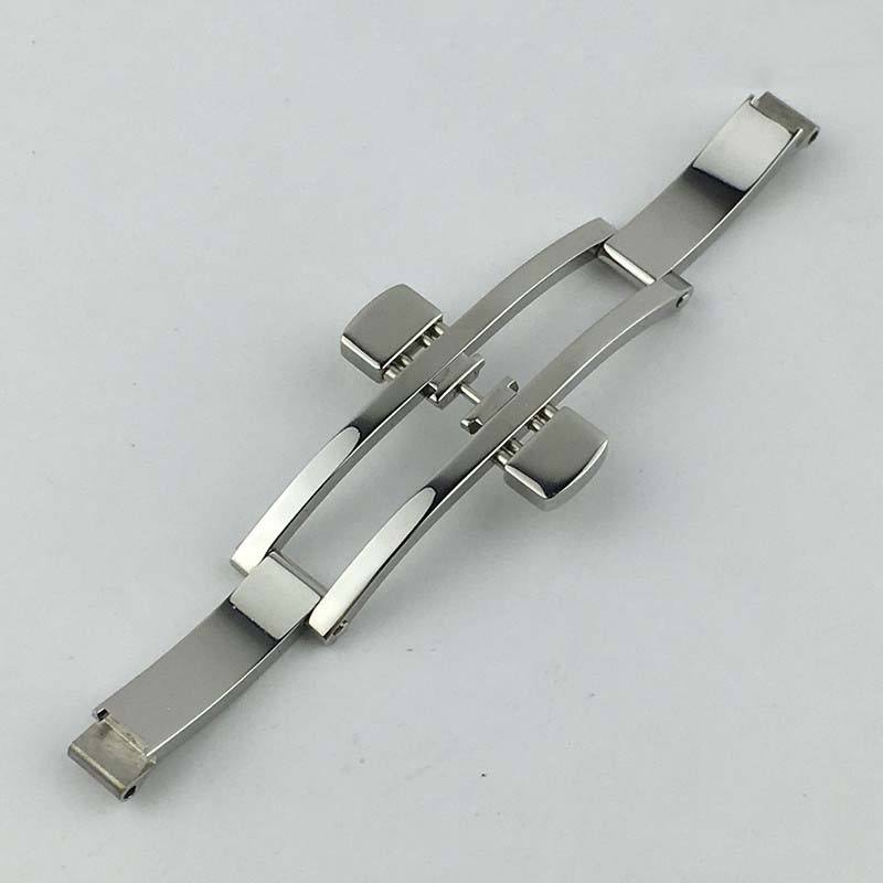 Many mid-to-high-end watch brands adopt a double push button butterfly clasp similar to this design. The key advantage lies in its symmetrical folding structure, which distributes stress evenly and improves wearing comfort. The hidden clasp profile also enhances the overall aesthetics of the watch, making it suitable for both dress watches and luxury sports models.